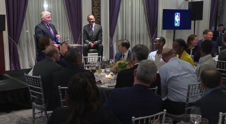 Dans la même soirée du 10 avril, le président Rwandais Paul Kagame et trois de ses enfants étaient aperçus participant, en riant et en applaudissant au diner des dirigeant de la NBA à New York !